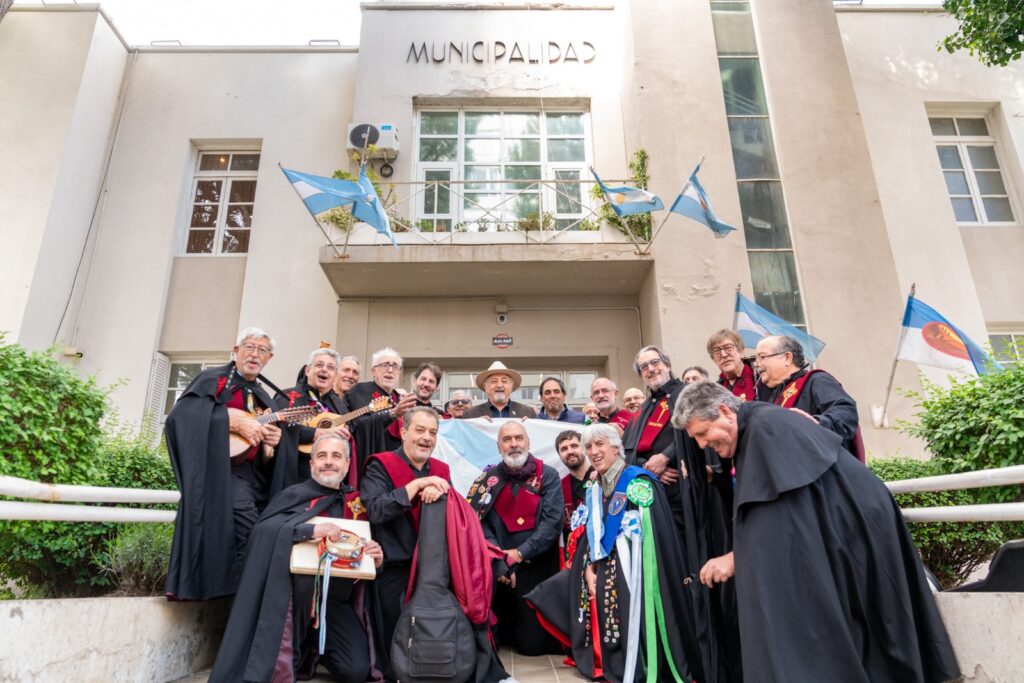 Agrupaciones tuneras de A Coruña y Santiago de Compostela visitaron al intendente Othar Macharashvili junto a la tuna local Los