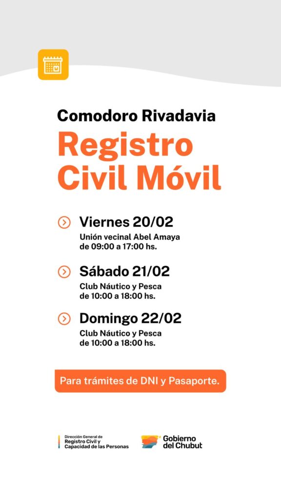 Comodoro Rivadavia: Provincia realizará un operativo de DNI con la Unidad Móvil del Registro Civil