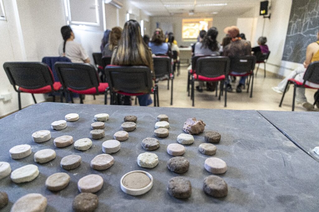 A lo largo del encuentro, los 18 asistentes, entre ellos arquitectos, maestros mayores de obras, constructores, técnicos, estudiantes de arquitectura, autoconstructores, albañiles, artistas plásticos y vecinos interesados, exploraron técnicas híbridas de muralismo y tuvieron la oportunidad de trabajar directamente con materiales naturales, fomentando el aprendizaje práctico y el reconocimiento sensorial de la tierra como insumo constructivo y artístico.