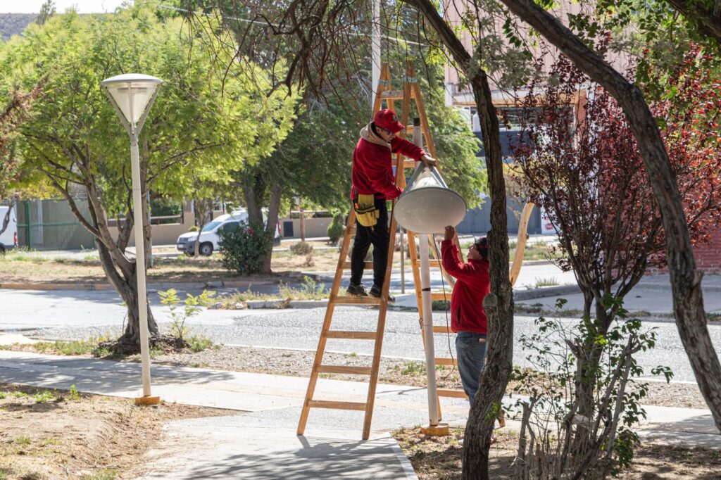 Los trabajos responden al mantenimiento del sistema de iluminación del espacio público situado en el barrio 9 de Julio, a fin de brindar un contexto seguro a los vecinos. Además de la renovación de las 18 farolas LED, se mejorará la infraestructura urbana del lugar.