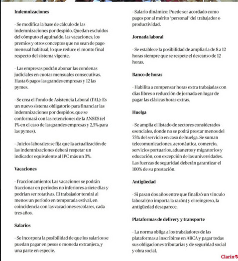 En materia de conflictos laborales, la ley amplía el listado de servicios esenciales, obligando a garantizar hasta un 75% de prestación durante huelgas, y tipifica los bloqueos como faltas muy graves. También se elimina la responsabilidad solidaria en casos de tercerización y se confirma el traspaso de la Justicia Laboral al ámbito de la Ciudad de Buenos Aires, con el objetivo de agilizar los procesos judiciales.