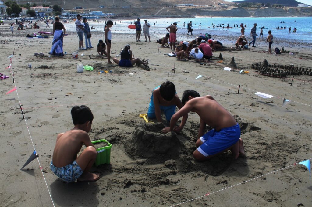 Durante dos horas, de 14 a 16, distintas familias participaron de la propuesta recreativa y participativa, que convocó a grupos de entre cuatro y seis integrantes. Cada equipo, acompañado por un adulto responsable, contó con un espacio delimitado de 3 x 4 metros donde dieron forma a castillos y esculturas utilizando únicamente materiales del entorno y herramientas básicas como palas y baldes.