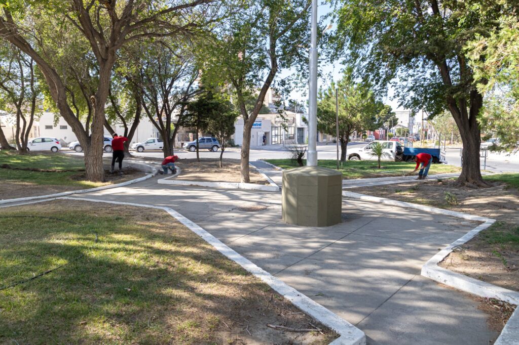 Con el objetivo principal de mejorar la seguridad, se avanza en la instalación de luminarias en la zona del cenotafio y en la rotonda del barrio 9 de Julio; además del recambio de artefactos en la plaza ubicada en la intersección de las avenidas Roca y Kennedy. Estos trabajos se complementan con tareas de limpieza, pintura y colocación de mobiliario urbano.